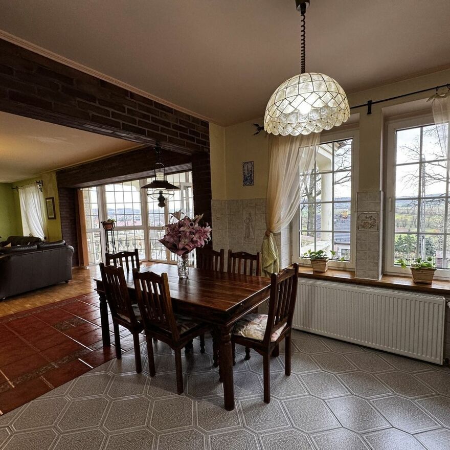 Na sprzedaż wyjątkowa posiadłość zlokalizowanaw Winnicy k/Legnicy, składająca się z dwóch domów mieszkalnych położonych na dużej działce o powierzchni 2700 m². Główna willa ma 220 m², a mniejszy dom ok. 65 m² powierzchni mieszkalnej. Nieruchomość idealna dla osób szukających komfortu, przestrzeni, wysokiego standardu oraz pięknych widoków na panoramę Karkonoszy.Willa została wzniesiona z najwyższej klasy materiałów - ceramika, ocieplenie styropianem, dachówka ceramiczna. W całości podpiwniczona, z przestronnym salonem z kominkiem, zapleczem biurowym, pralnią, suszarnią, dwiema łazienkami oraz dużymi tarasami z zachwycającym widokiem.